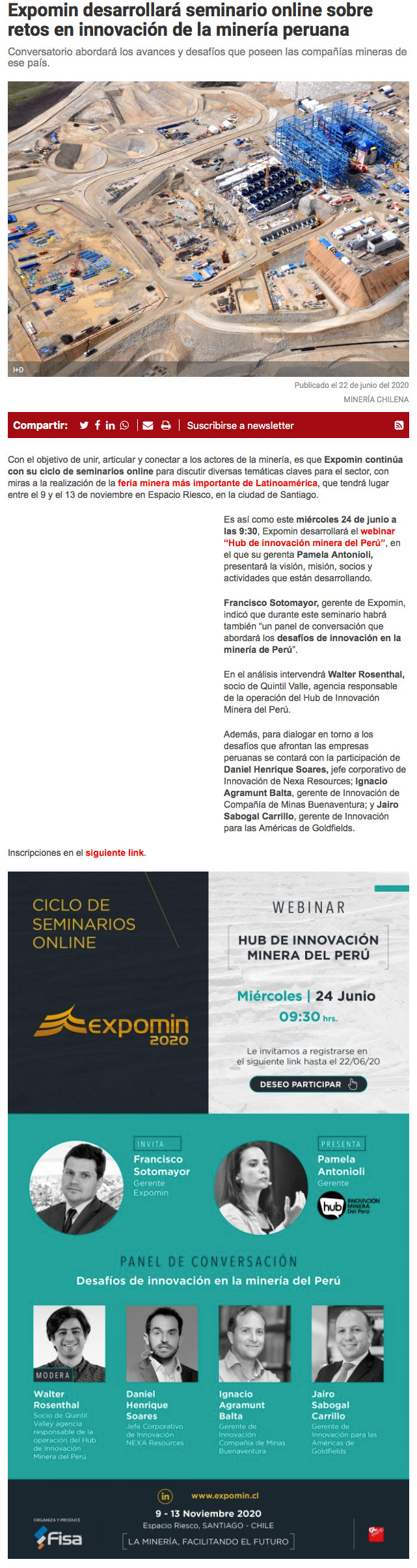 Expomin realizará seminario sobre la innovación minera en Perú - (nuevaminería online)