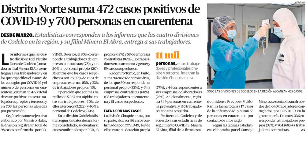 Medidas adoptadas por Codelco reducirían la dotación de Chuquicamata en 5 mil personas - (El Mercurio de Calama)