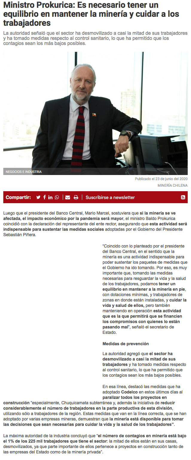 Ministro de Minería detalla las medidas tomadas por la industria ante el Covid-19 - (Radio Duna)