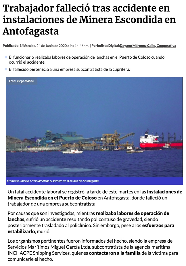 PDI investiga accidente en que falleció trabajador en Puerto Coloso - (El Mercurio de Antofagasta)