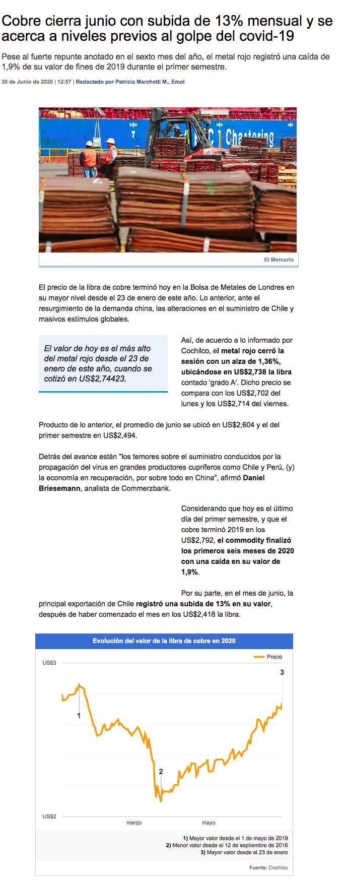 Cobre cierra su mejor trimestre en 11 años y se acerca a revertir las pérdidas de 2020 - (Pulso Online)