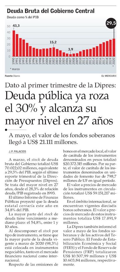 Deuda pública está cerca del 30% del PIB y fondos soberanos suman US$ 20 mil millones - (Diario Financiero)