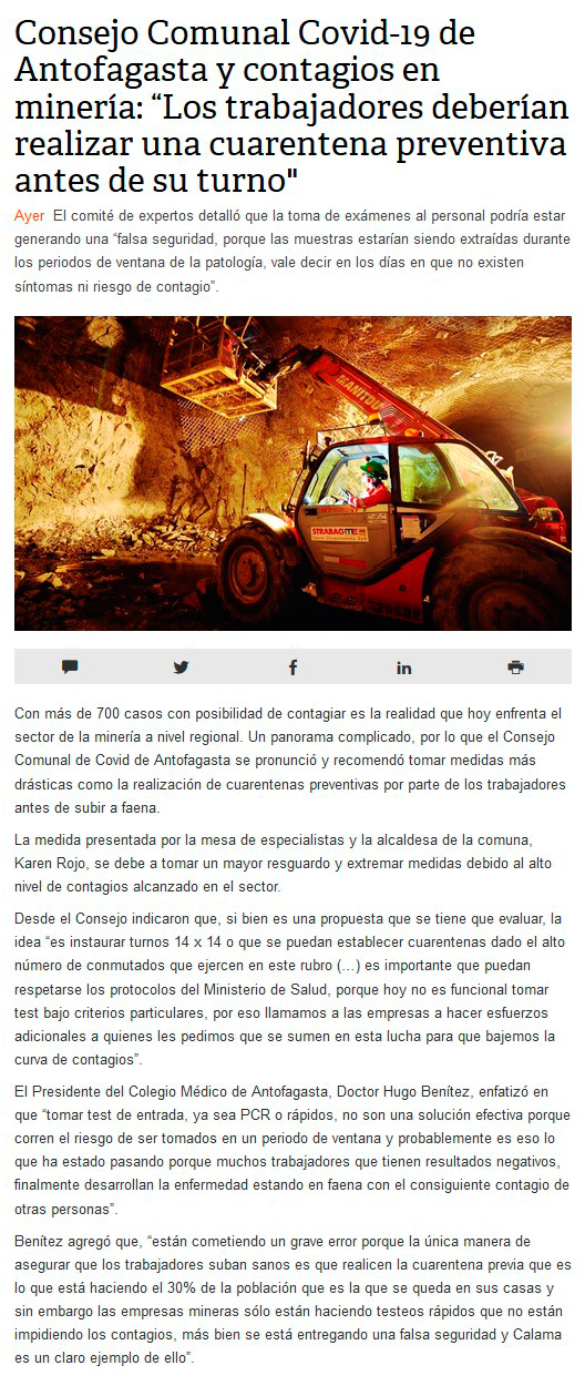 Consejo Comunal Covid propone cuarentenas y turnos 14x14 - (El Mercurio de Antofagasta)