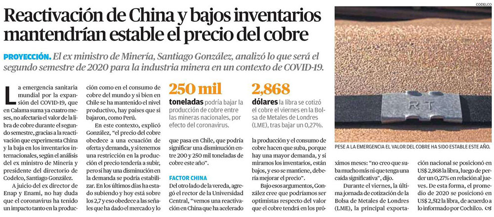 Cobre suma su octava semana consecutiva de alzas - (DF Online)
