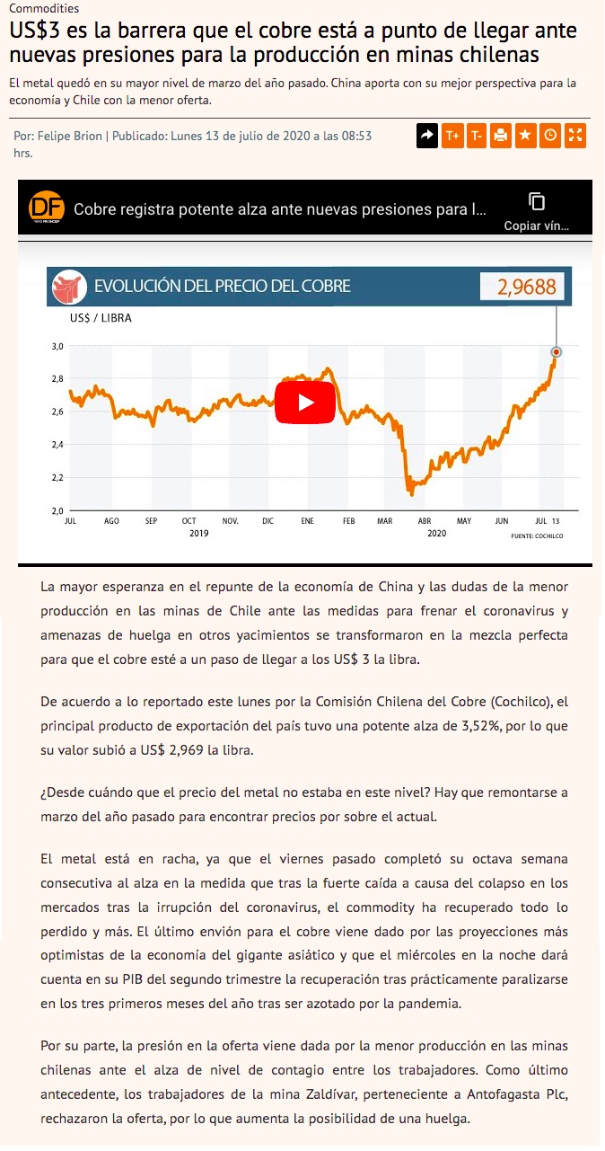 Cobre mantiene rally alcista y queda a un paso de los US$ 3 - (Diario Financiero)