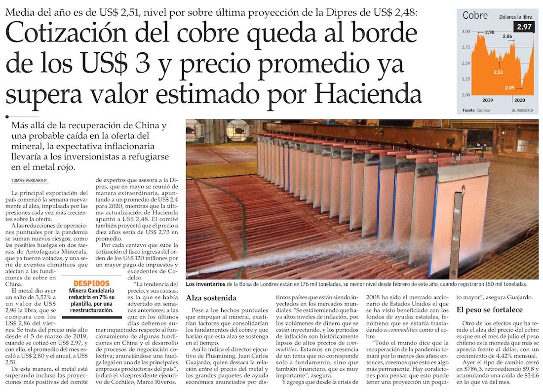 Cobre mantiene rally alcista y queda a un paso de los US$ 3 - (Diario Financiero)