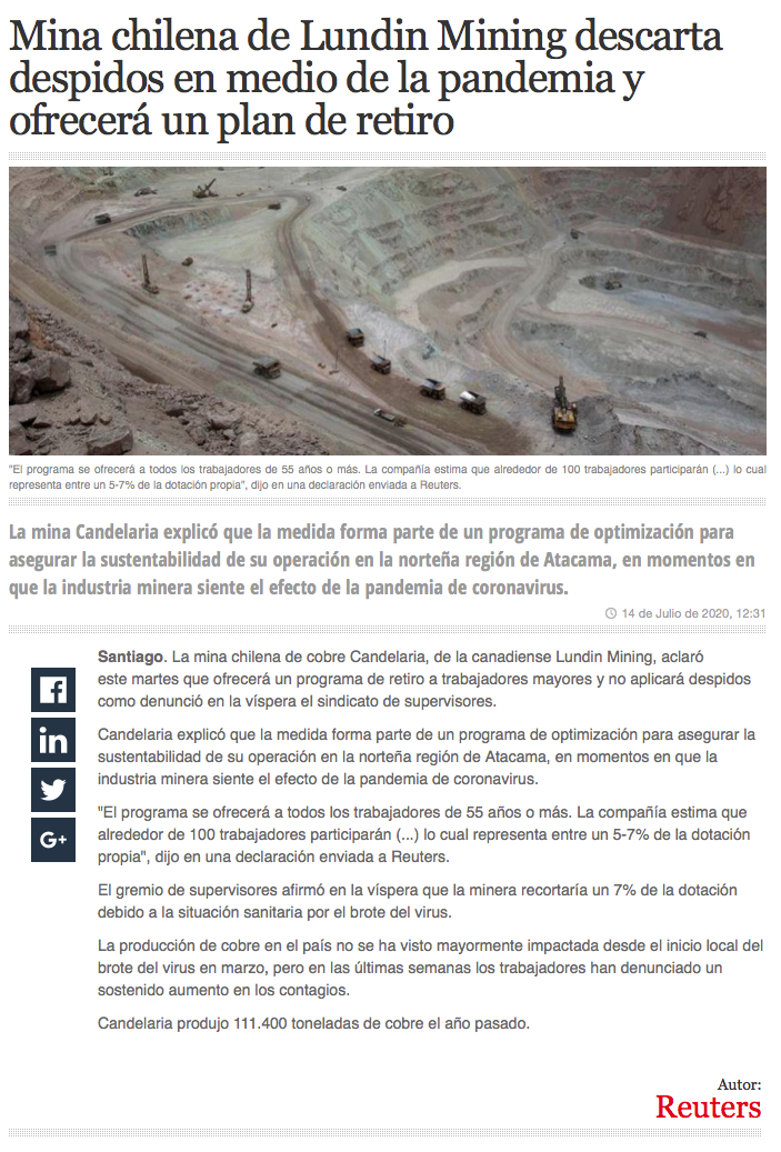 Trabajadores de la minera Candelaria se podrán acoger a retiro - (El Diario de Atacama)
