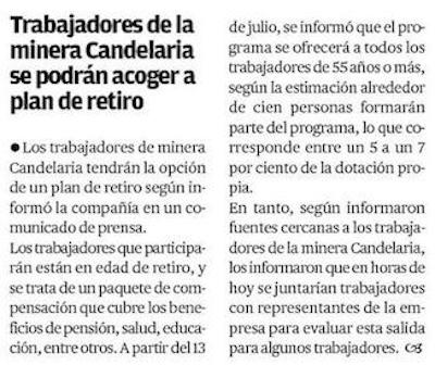 Mina chilena de Lundin Mining descarta despidos en medio de la pandemia y ofrecerá un plan de retiro - (americaeconomia online)