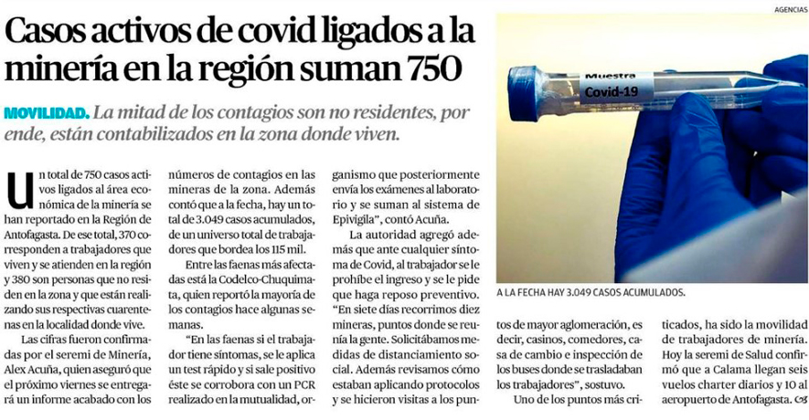 Minería en la región mantiene un total de 750 casos activos - (Estrella de Antofagasta)