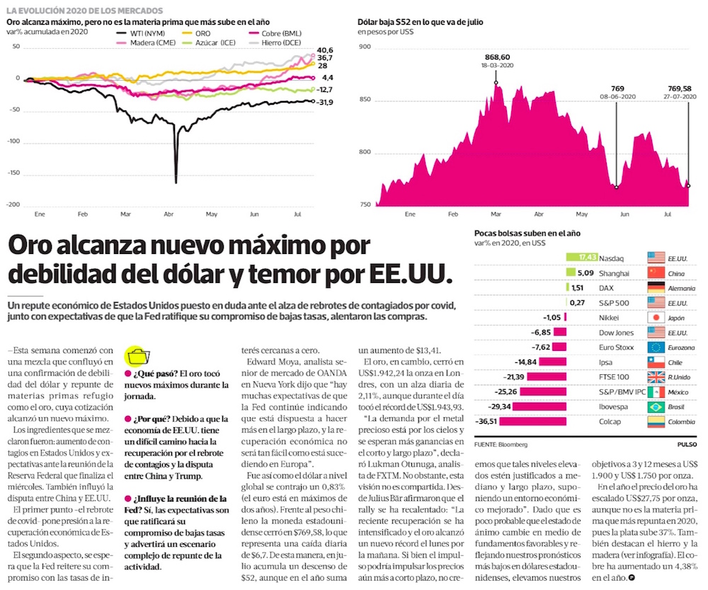 Oro pulveriza récord por escalada en disputa de EE.UU. y China - (El Mercurio de Santiago)