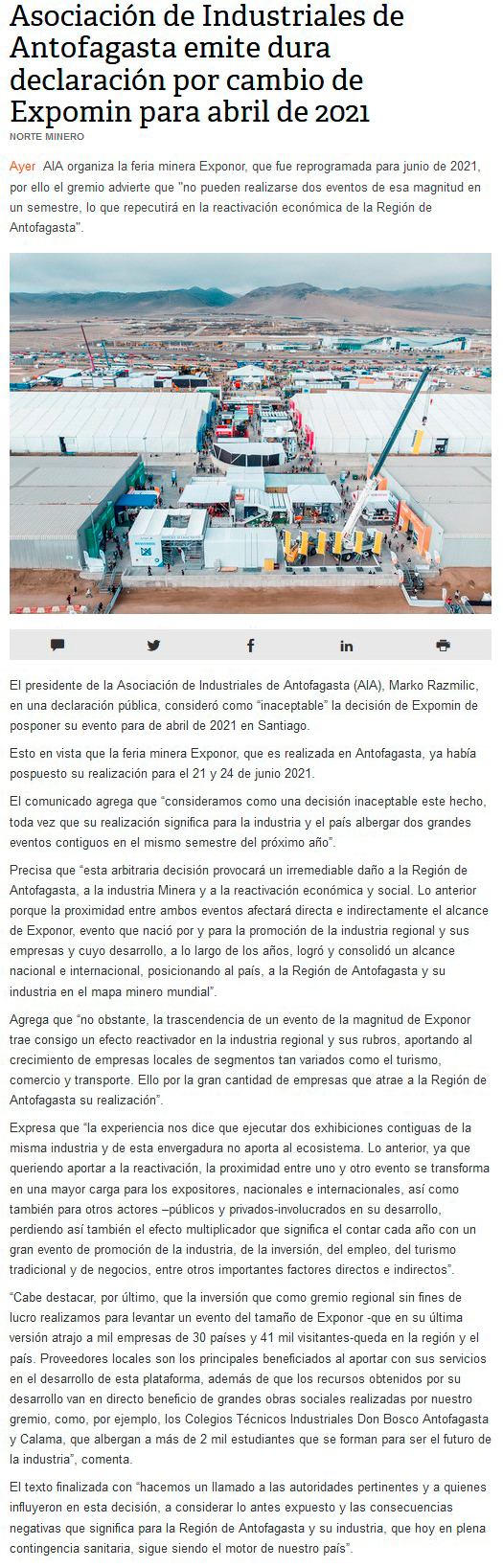 ¿Y qué pasará con la Exponor?: AIA emite dura declaración por cambio de fecha de la Expomin - (elnortero)