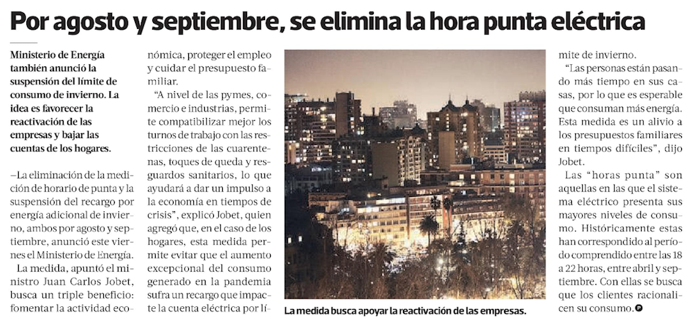 Ministerio de Energía elimina medición de "hora punta" y suspende límite de invierno por agosto y septiembre - (DF Online)