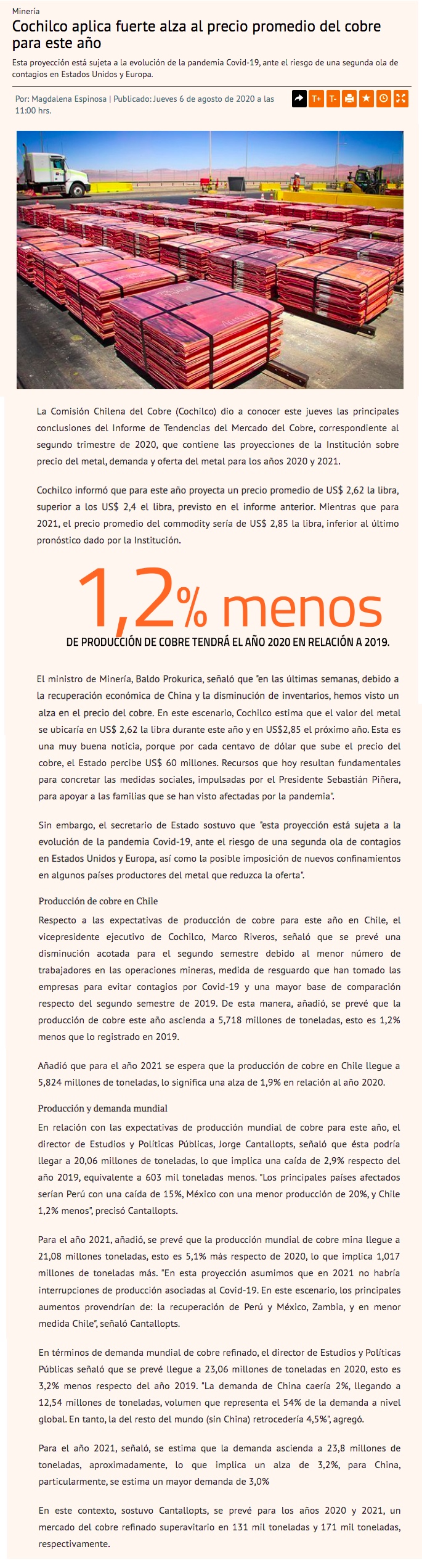 El cauto optimismo de Cochilco para la producción de cobre este año - (Pauta)