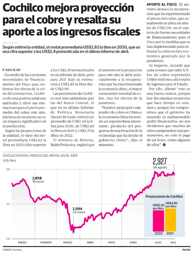 Alza del cobre reportaría más de US$ 1.000 millones extras al fisco - (El Mercurio de Santiago)