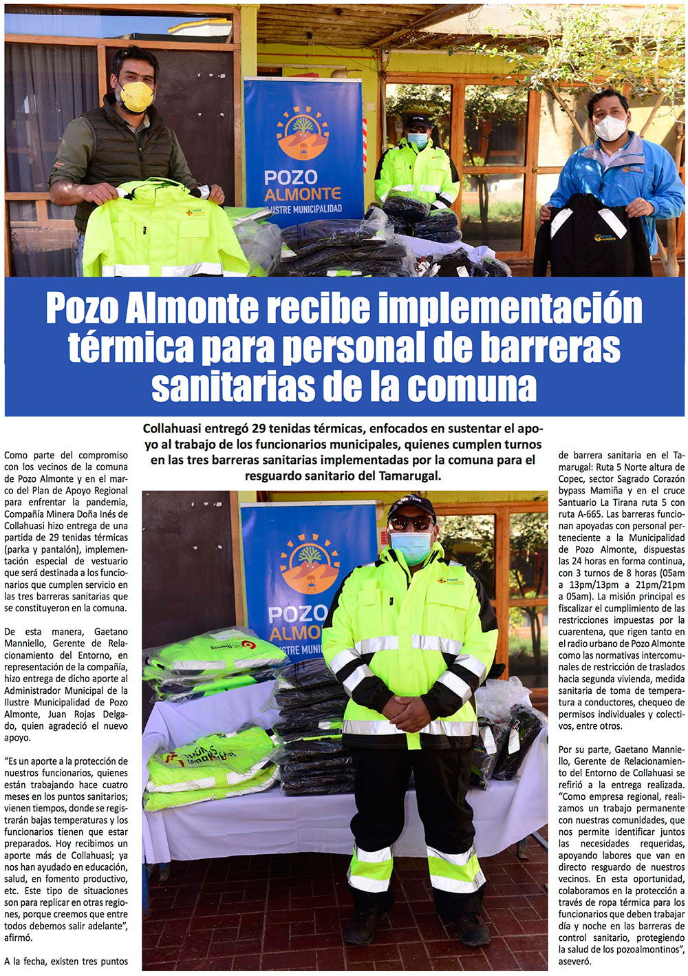 Pozo Almonte recibe implementación térmica para personal de barreras sanitarias - (Estrella de Iquique)