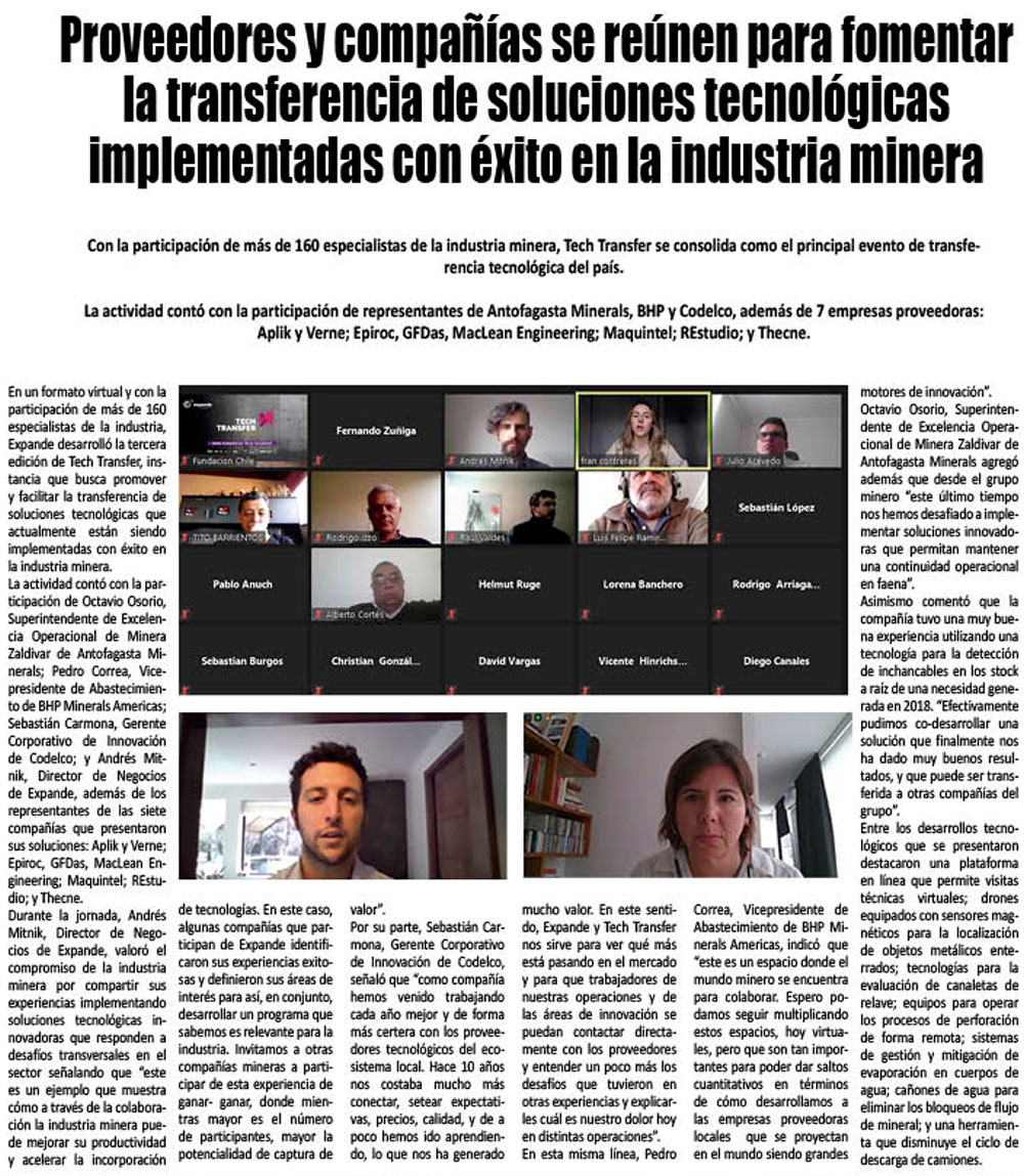 Proveedores y compañías se reúnen para fomentar la transferencia de soluciones tecnológicas implementadas con éxito en la industria minera - (portalminero)