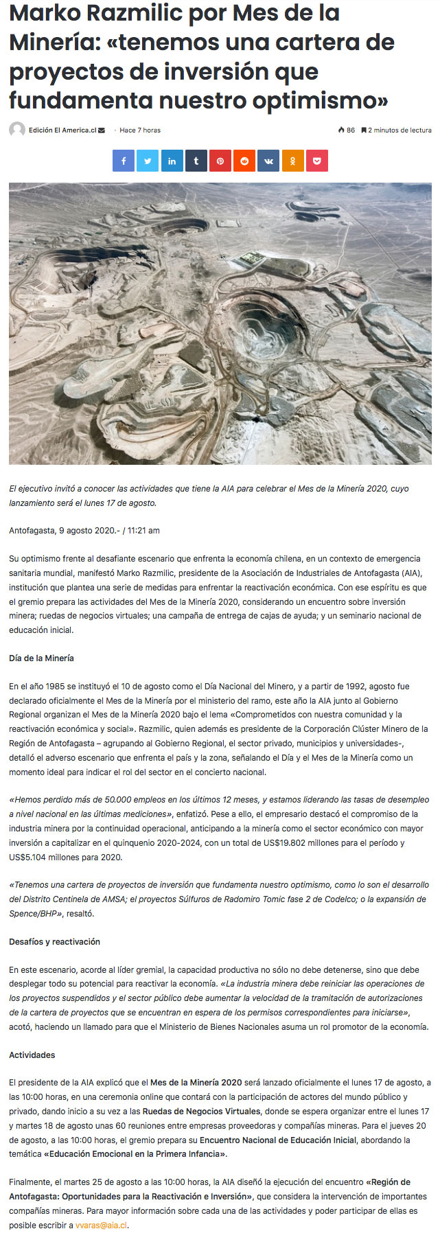 Marko Razmilic por Mes de la Minería: “tenemos una cartera de proyectos de inversión que fundamenta nuestro optimismo” - (reporteminero)