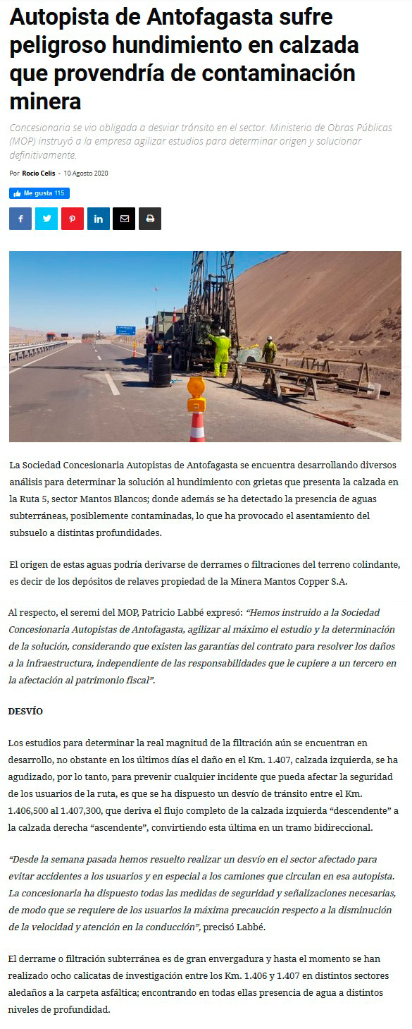 Investigan hundimiento en calzada de transitada ruta de la región de Antofagasta - (elnortero)