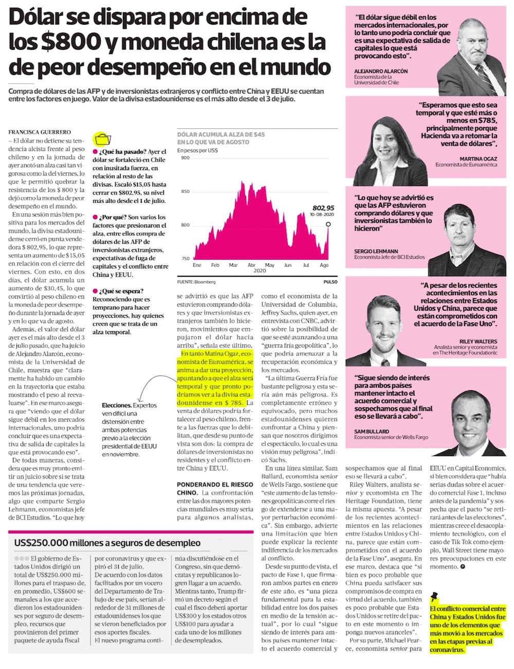 Dólar vuelve a superar los $800 luego que el peso tuviese la mayor caída en el mundo - (El Mercurio de Santiago)