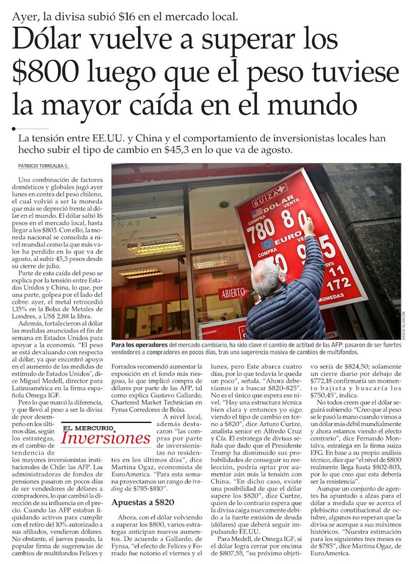 Dólar se dispara por encima de los $800 y moneda chilena es la de peor desempeño en el mundo - (Pulso)