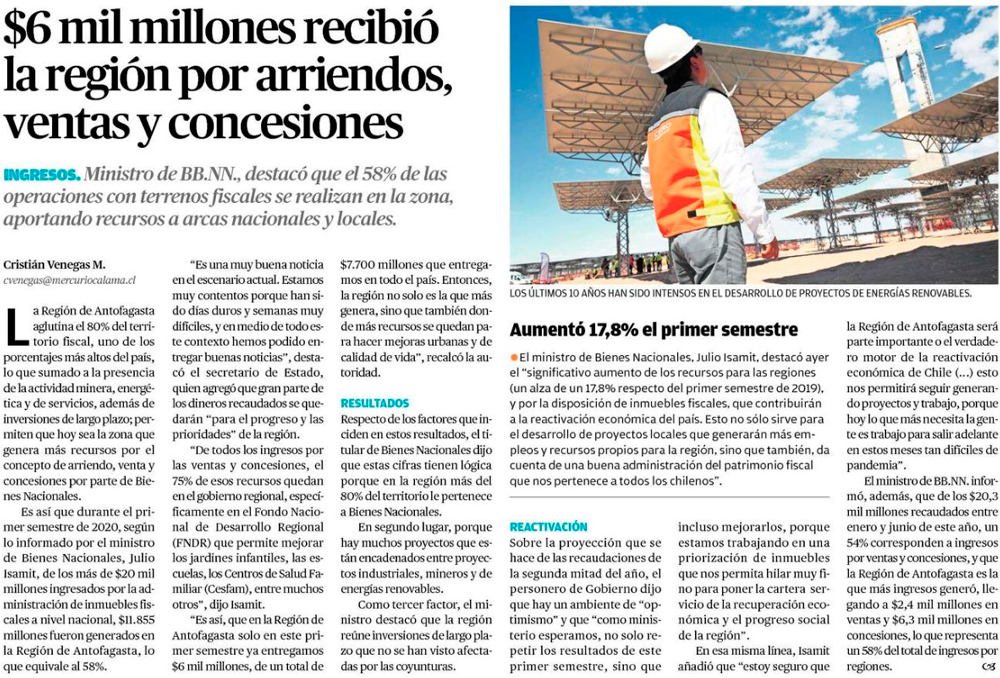 Región de Antofagasta generó 8,7 mil millones por venta y concesión de inmuebles fiscales - (cooperativa online)