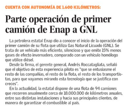 Comienza a operar primer camión de transporte de ENAP que utiliza Gas Natural Licuado - (El Mostrador)
