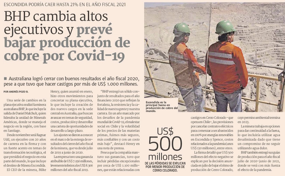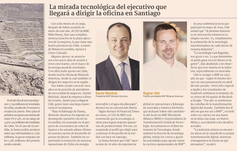 BHP realiza cambio mayor en su estructura ejecutiva que toca a Chile - (Pulso Online)