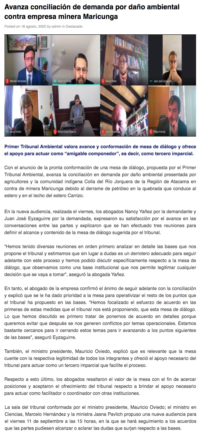 Avanza conciliación de demanda por daño ambiental contra minera Maricunga - (mch.cl)