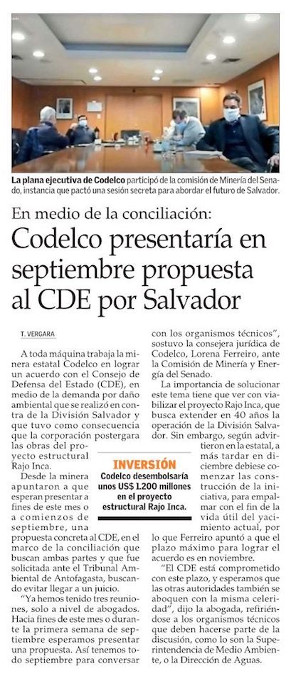 Codelco presentará este mes propuesta de acuerdo frente a demanda del CDE - (Diario Financiero)