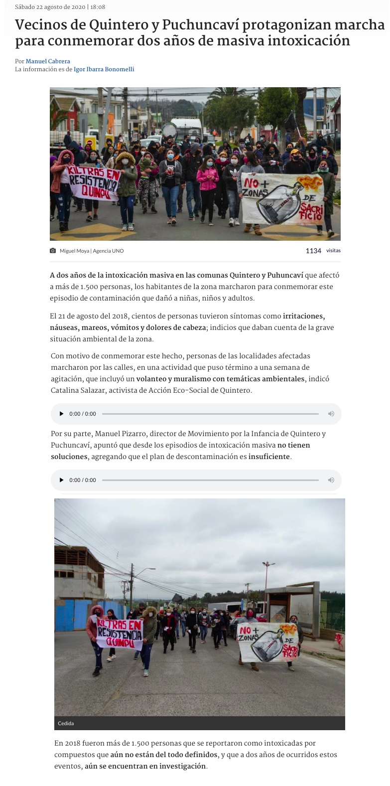Quintero y Puchuncaví: A 2 años de masiva intoxicación, vecinos dicen sentirse aún desprotegidos - (biobiochile online)