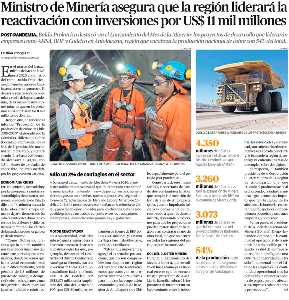 La región de Antofagasta liderará la reactivación post-pandemia - (El Mercurio de Antofagasta)