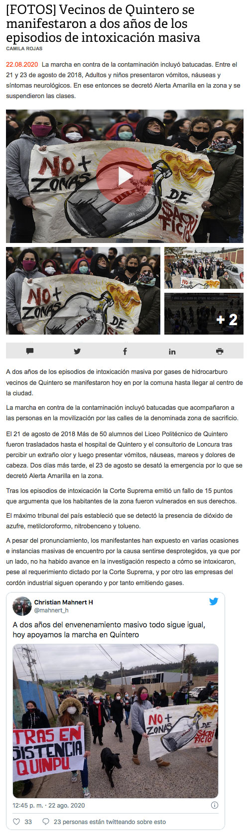 Quintero y Puchuncaví: A 2 años de masiva intoxicación, vecinos dicen sentirse aún desprotegidos - (biobiochile online)