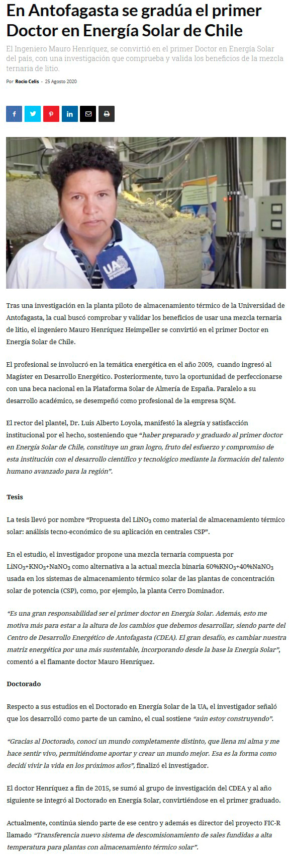 ¿Cómo aportará a la región?: Universidad local gradúa al primer ‘Doctor en Energía Solar’ de Chile - (elnortero)