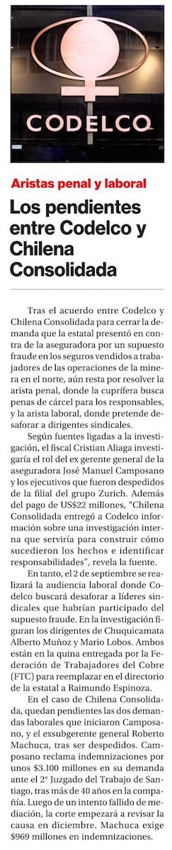 Fiscalía tras acuerdo Codelco - Chilena Consolidada: “Con esta información probablemente haremos diligencias en otro sentido” - (Diario Financiero)