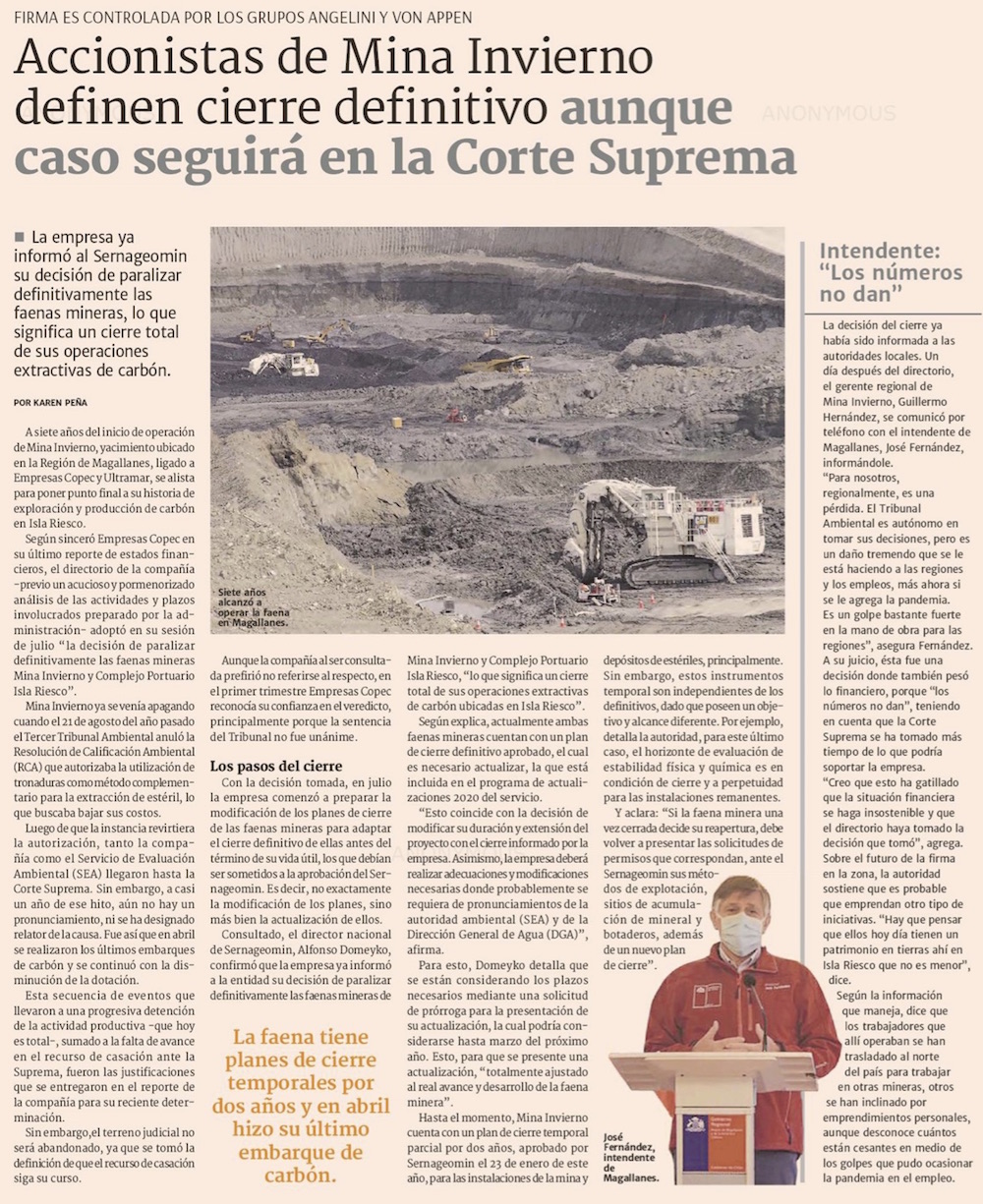 Accionistas de Mina Invierno definen cierre definitivo - (El Pingüino)
