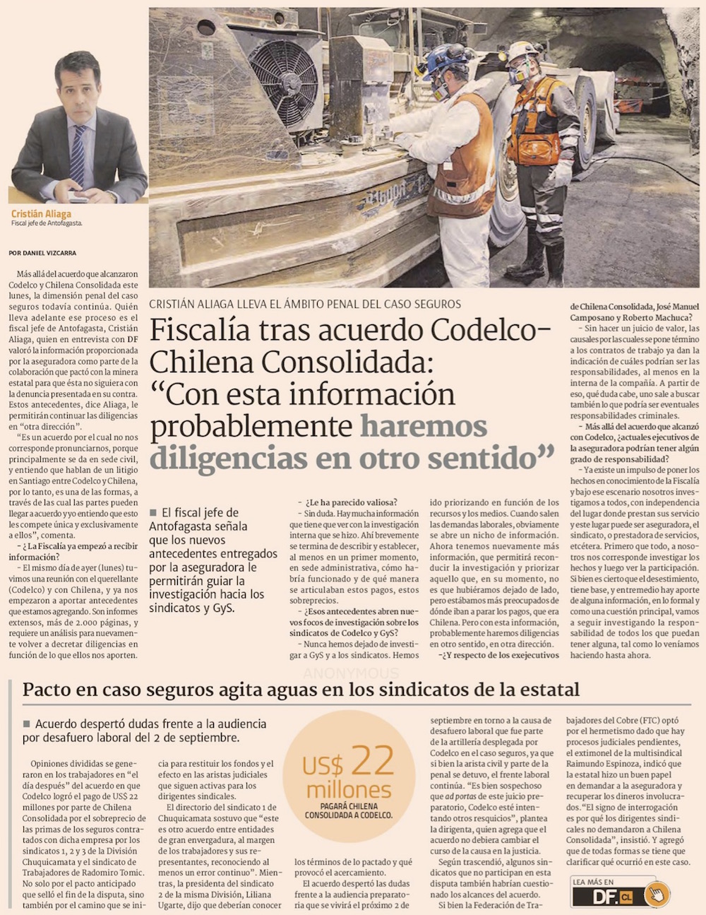 Los pendientes entre Codelco y Chilena Consolidada - (La Segunda)