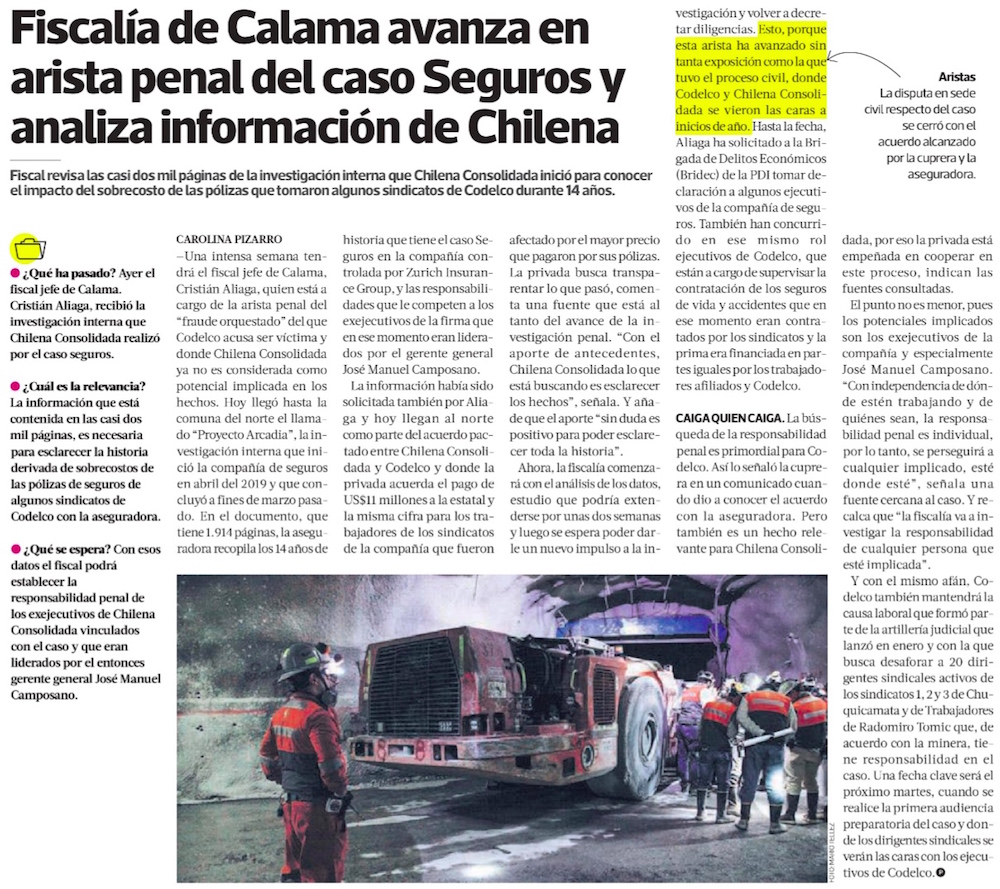 Fiscalía tras acuerdo Codelco - Chilena Consolidada: “Con esta información probablemente haremos diligencias en otro sentido” - (Diario Financiero)