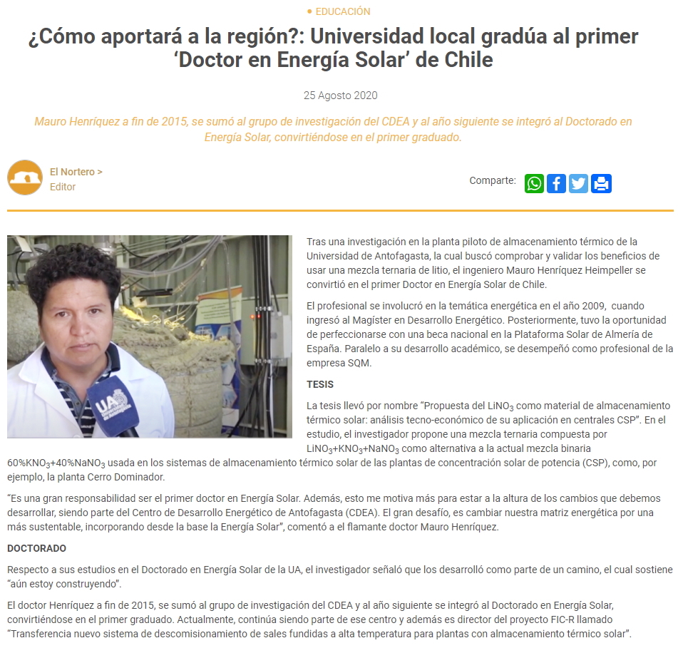 En Antofagasta se gradúa el primer Doctor en Energía Solar de Chile - (diarioantofagasta)