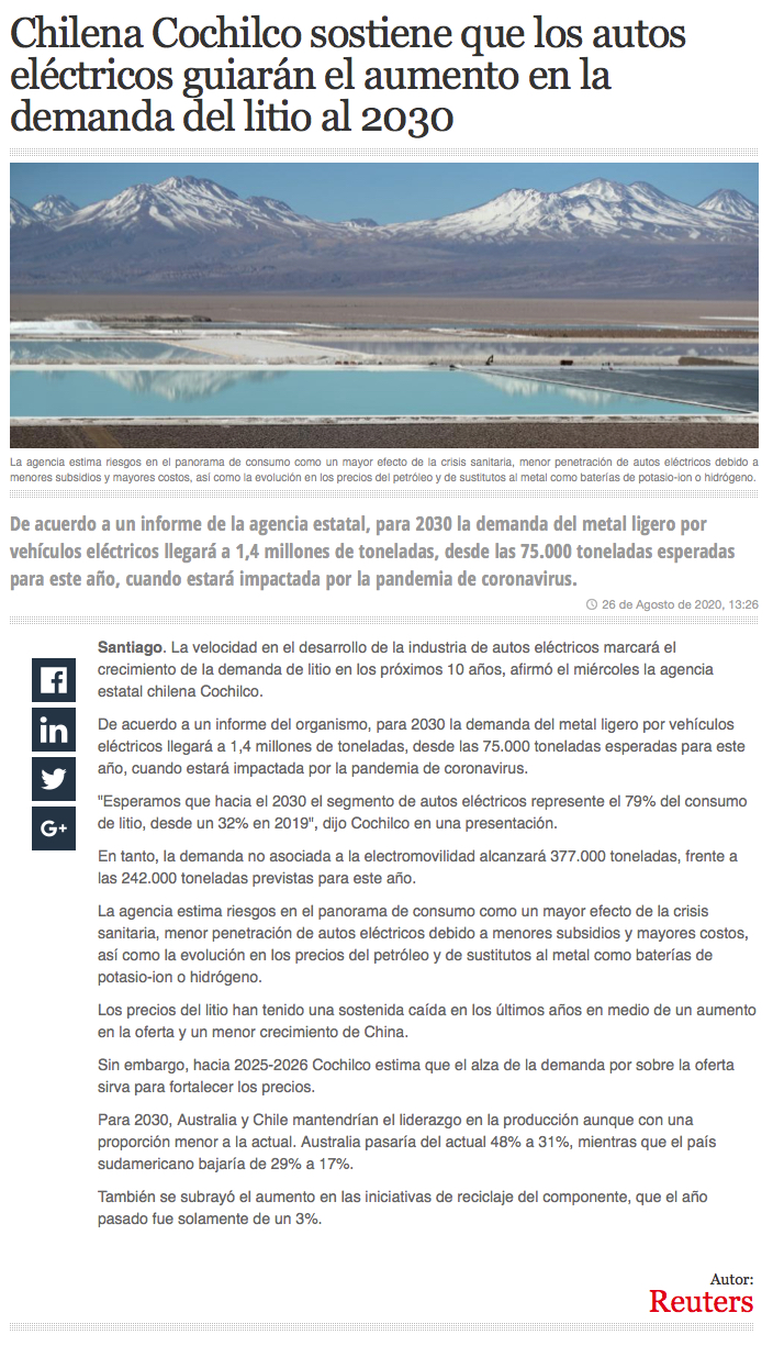 Electromovilidad representará 79% del consumo de litio hacia 2030 - (electromov.cl)