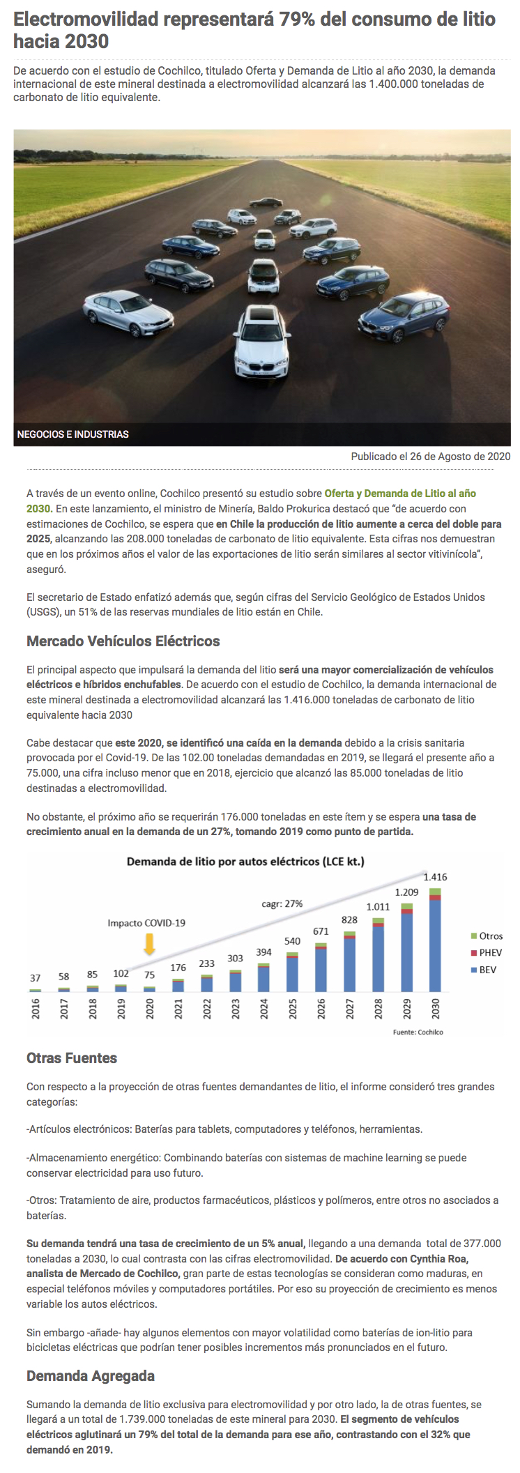 Electromovilidad representará 79% del consumo de litio hacia 2030 - (mch.cl)