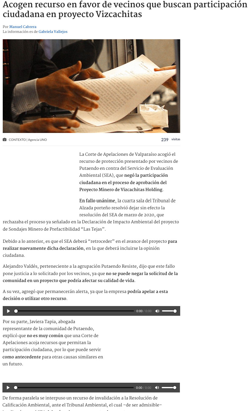 Putaendo: Corte de Apelaciones acogió recurso que exige participación ciudadana en proyecto de minera Vizcachitas - (eldesconcierto)