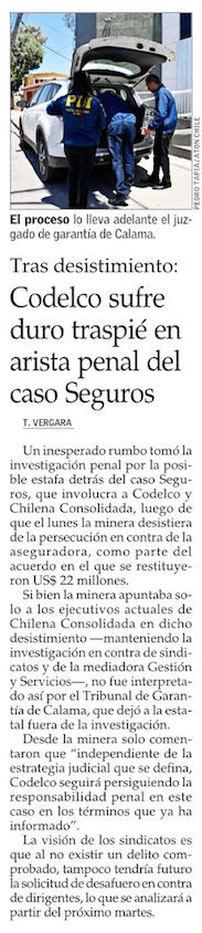 Por error propio, Codelco queda fuera de querella en caso Seguros - (Pulso)