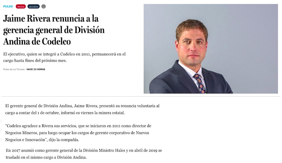 Renuncia el gerente general de División Andina - (El Mercurio de Santiago)