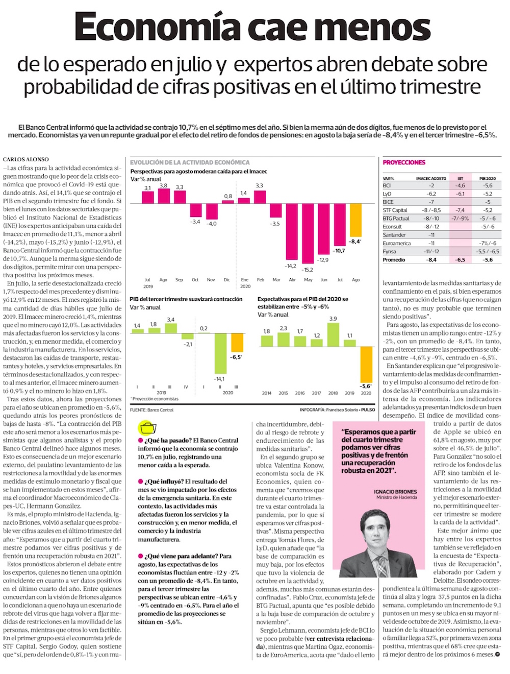 Economía se anima con el rebote: cae menos de lo esperado en julio y en agosto la baja sería de un dígito - (Diario Financiero)