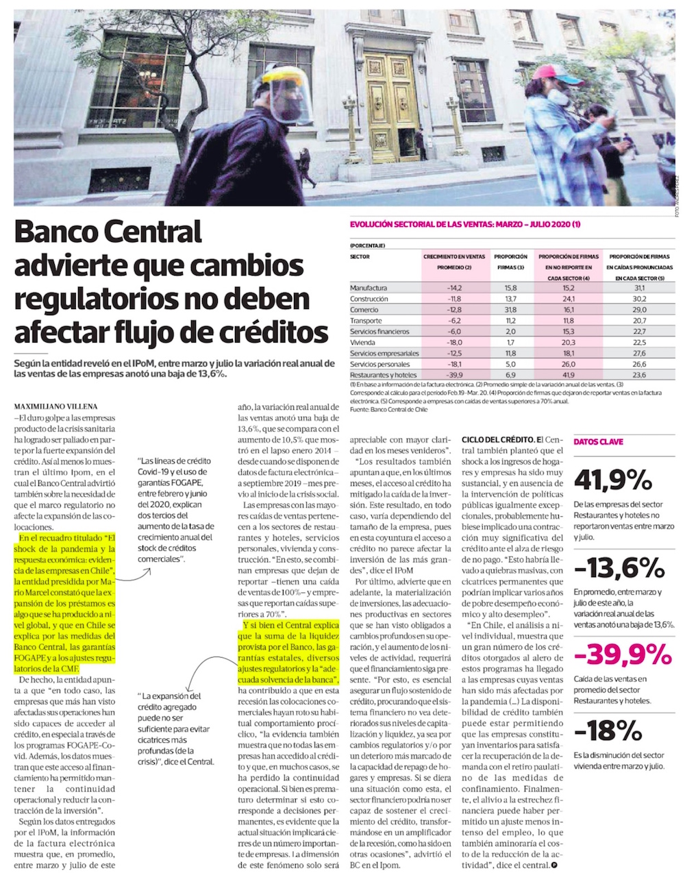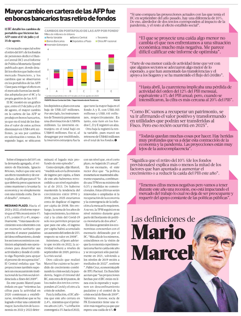 B. Central modera caída prevista para el PIB este año, pero también ajusta proyección de 2021 - (El Mercurio de Santiago)