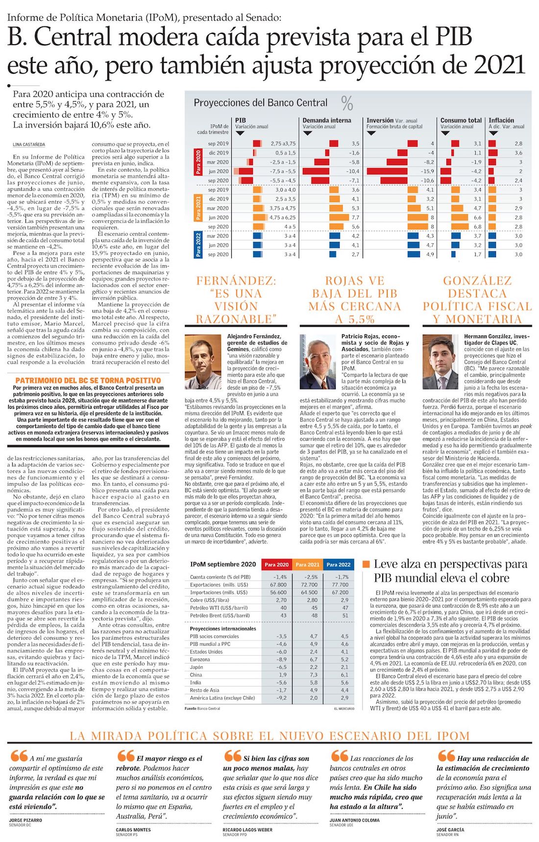 Se atenúa el bajón: B. Central ve menor caída del PIB este año ante reapertura y retiro del 10% - (Diario Financiero)