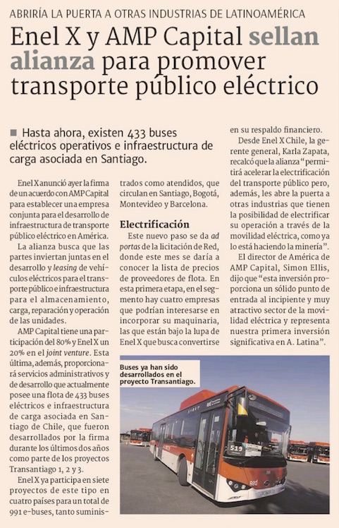Enel X se asocia con AMP para impulsar electromovilidad - (El Mercurio de Santiago)
