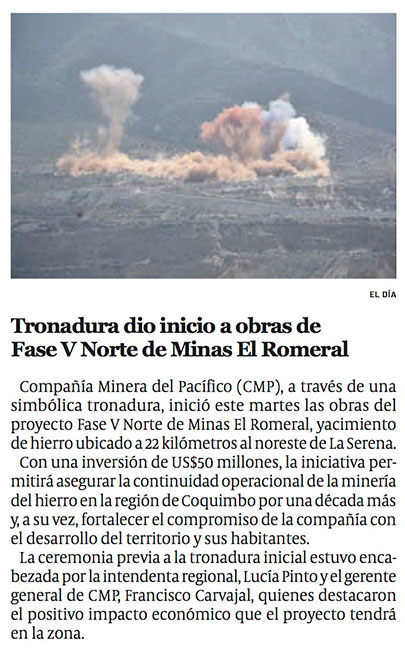 Primera tronadura marca inicio de la Fase 5 de ampliación de Minas El Romeral - (La Región)