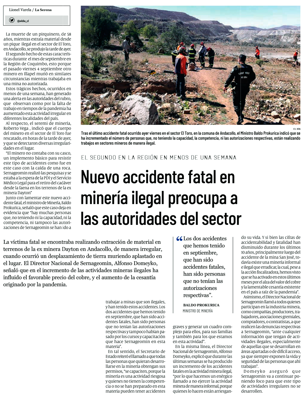 Trabajador minero de 40 años fallece en Andacollo - (La Región)