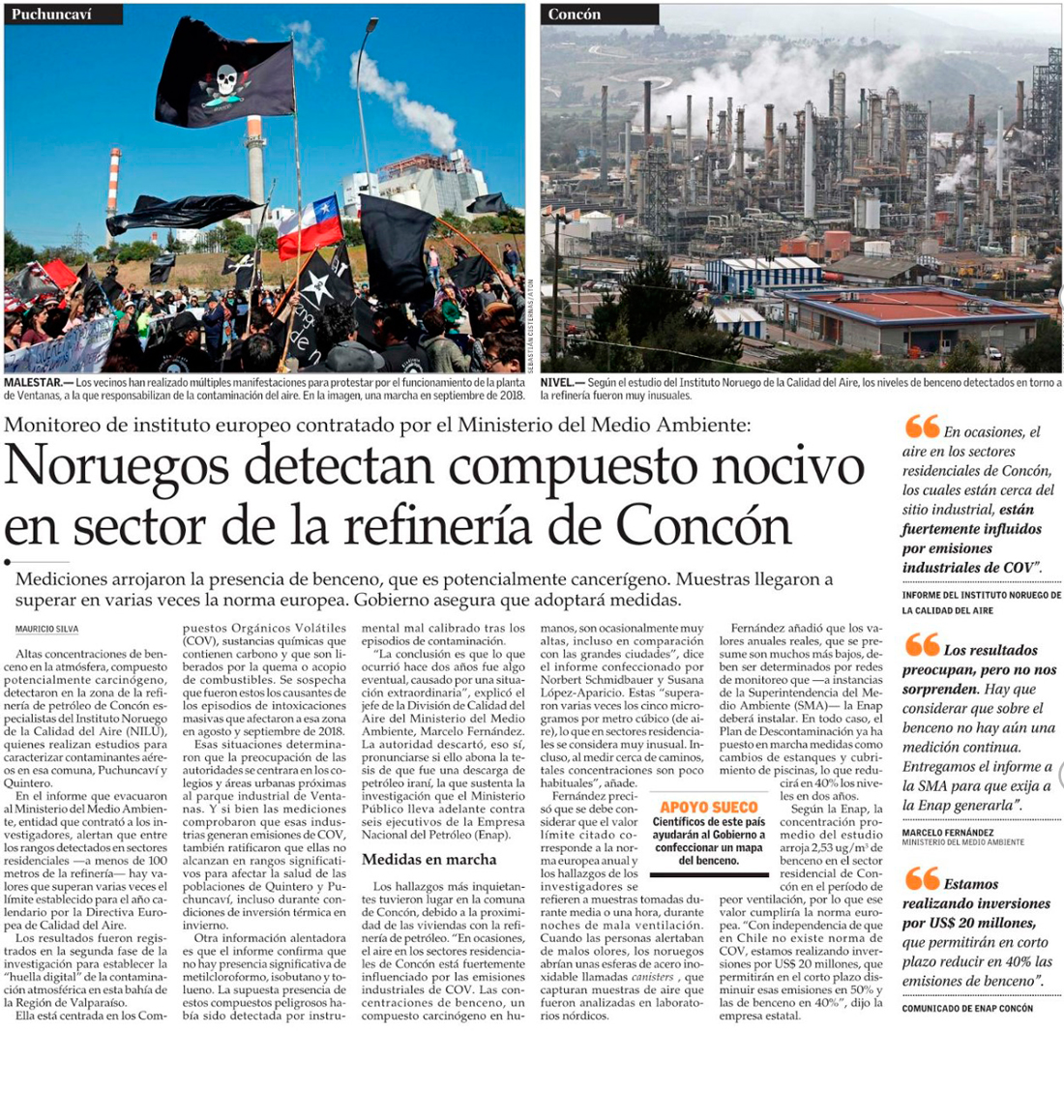 Informe noruego revela emisiones altas de noche en zonas de Concón - (El Mercurio de Valparaíso)